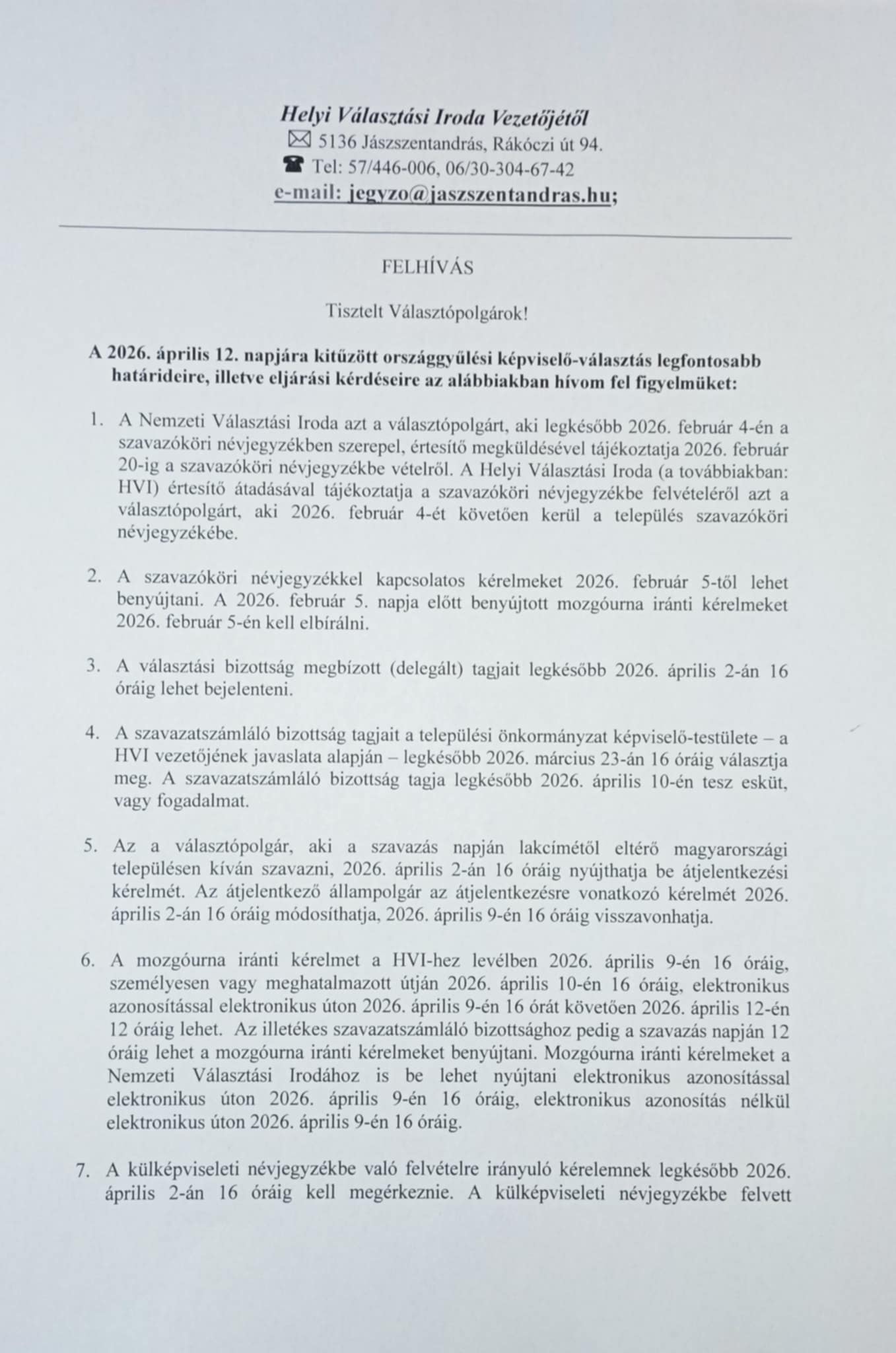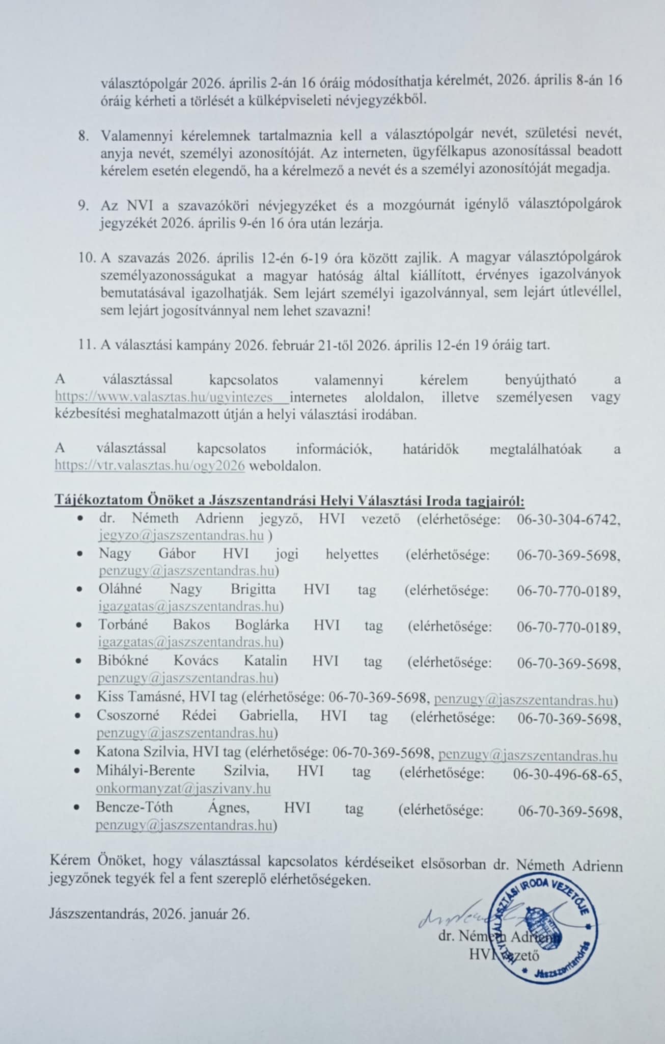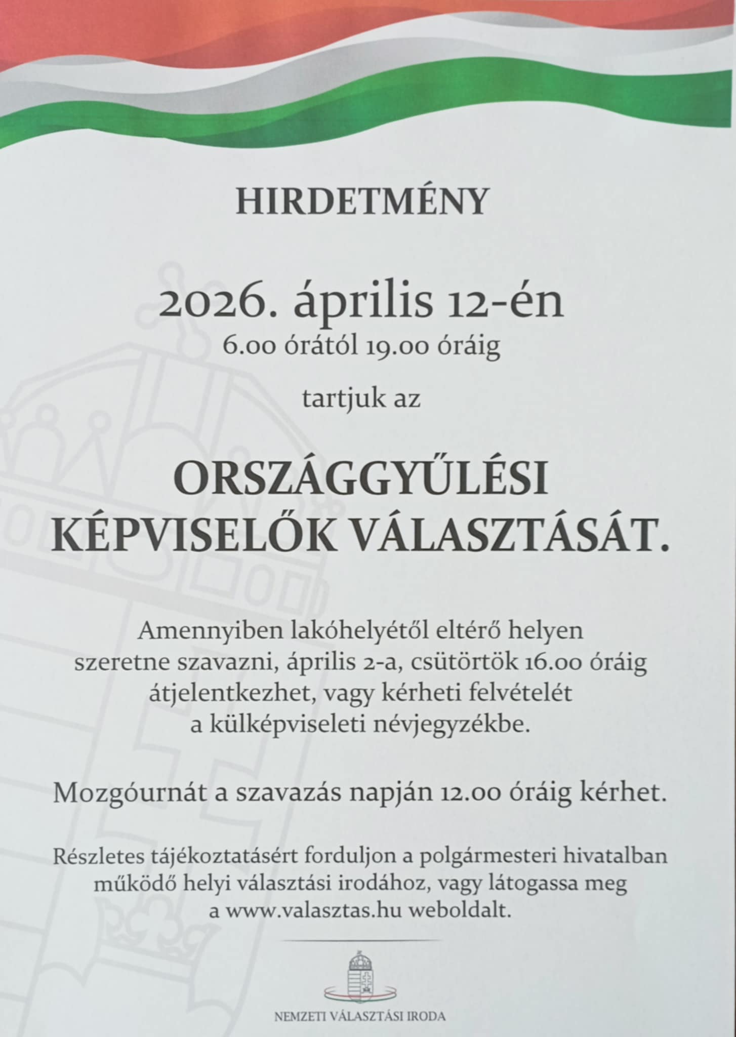 A választással kapcsolatos információk, határidők megtalálhatóak a